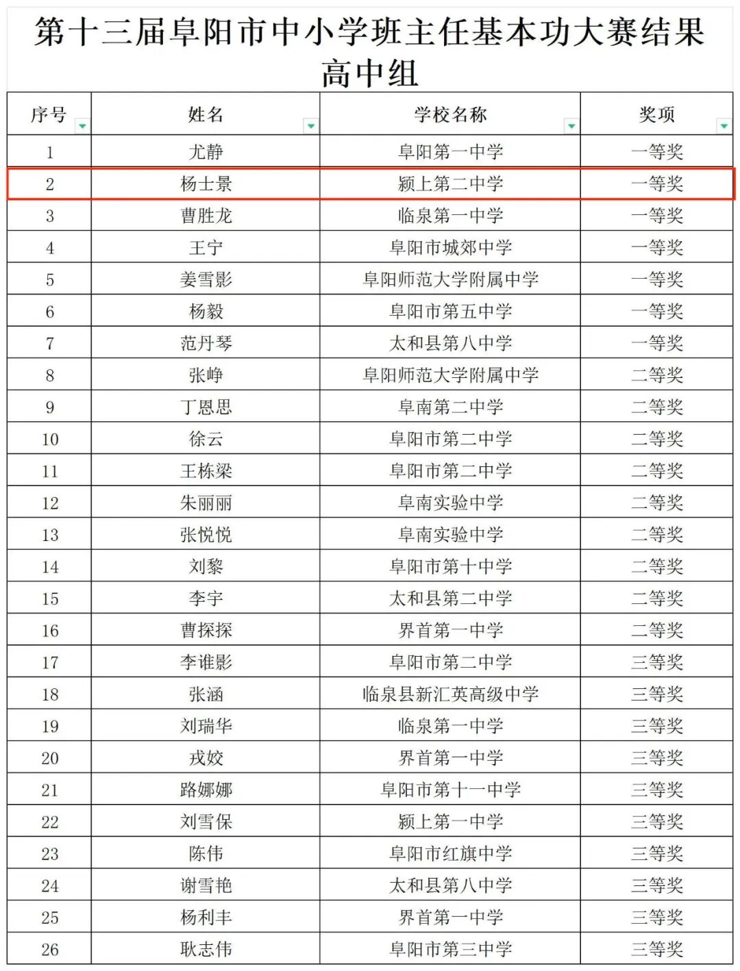 第十三届阜阳市班主任基本功大赛结果公示