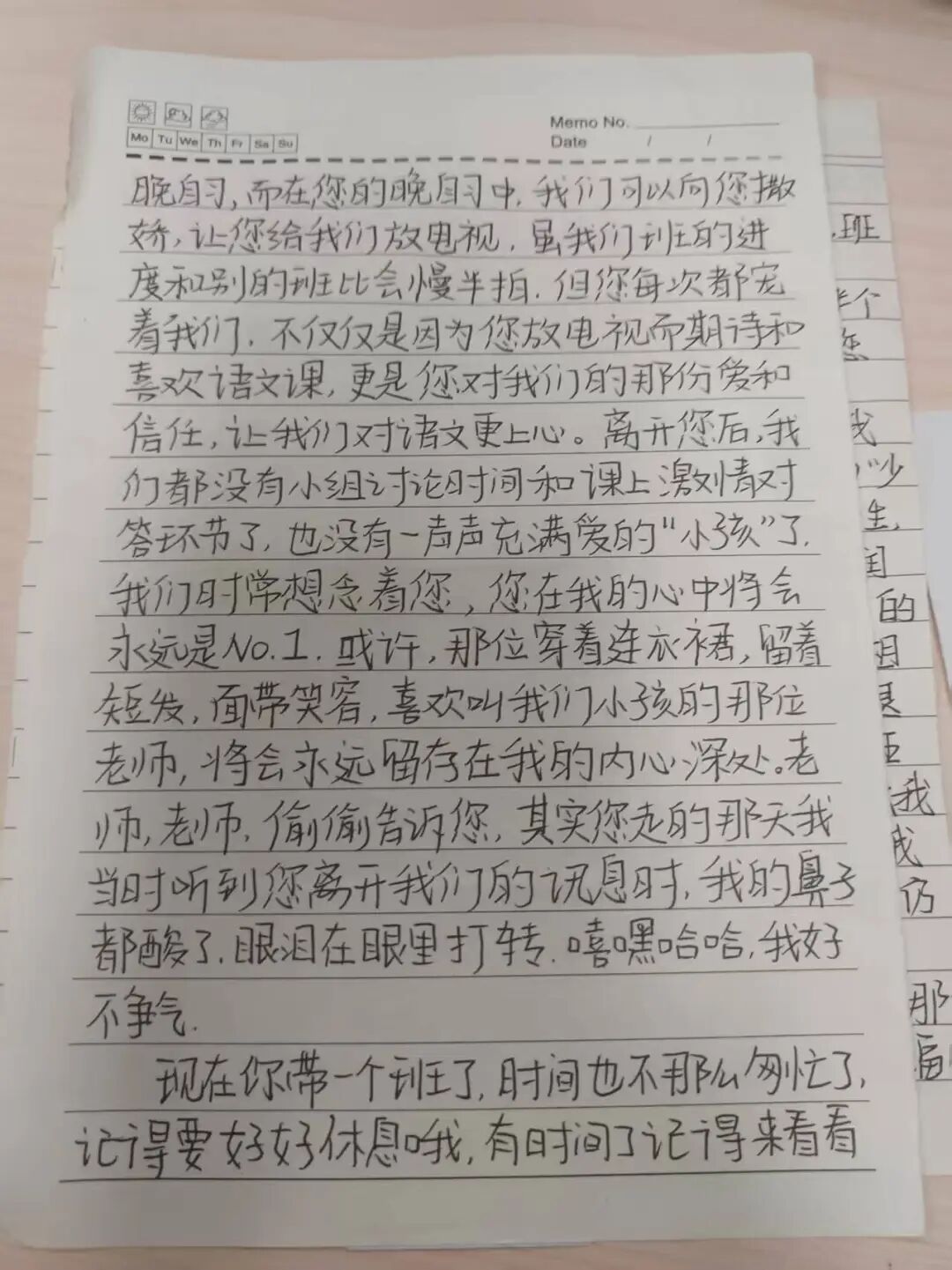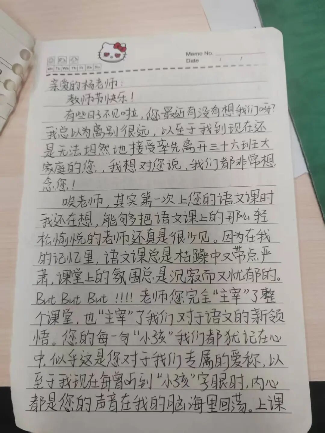学生吕欣雨说:杨老师,您还记得吗?江南十校联考,我考砸了,下课后我趴在您肩上痛哭,您轻轻地拍着我的背、默默地给我递抽纸,等我不哭了您才跟说“这次考差是好事,正好让你沉下心来抓紧时间查漏补缺,时间还来得及,擦干眼泪加油干吧,我相信你,小孩!”,高考时您口中的小孩真的考上了本科。
