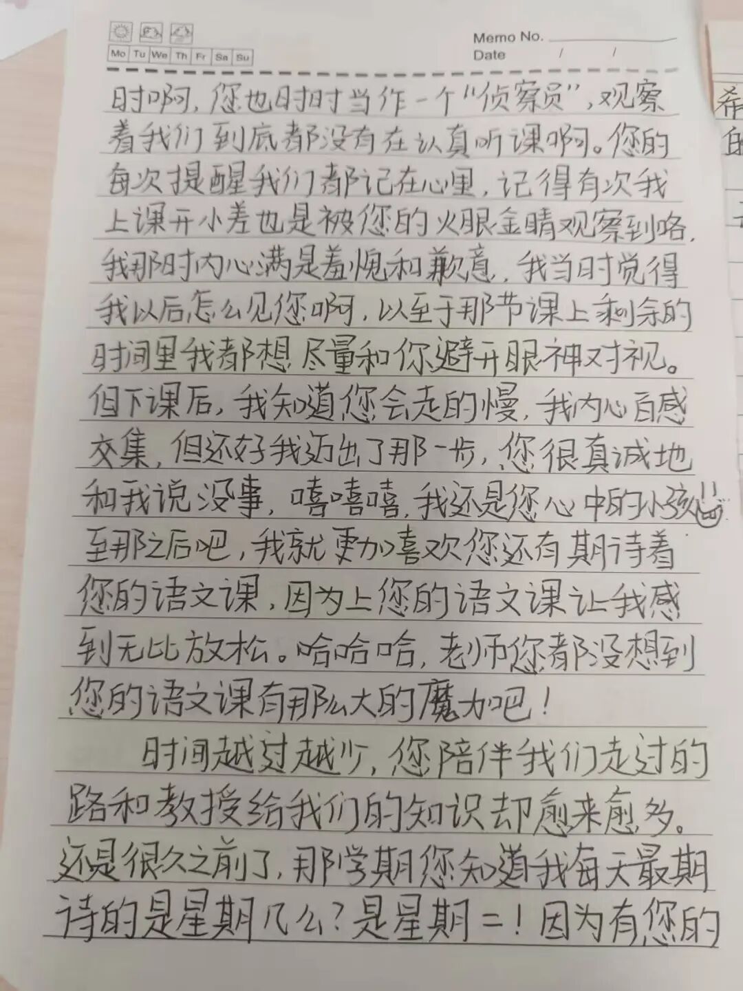 学生赵晨风说:杨老师,您还记得吗?您第一次找我回答问题时说“赵晨风,早晨的第一缕风,清凉爽利,还有淡淡的甜味,好名字”,我第一次从我的语文老师口中知道自己的名字这么有味道,从此我把考大学当一名像您一样的语文老师作为我的人生目标,老师您知道吗,现在我真的成了当年的您。