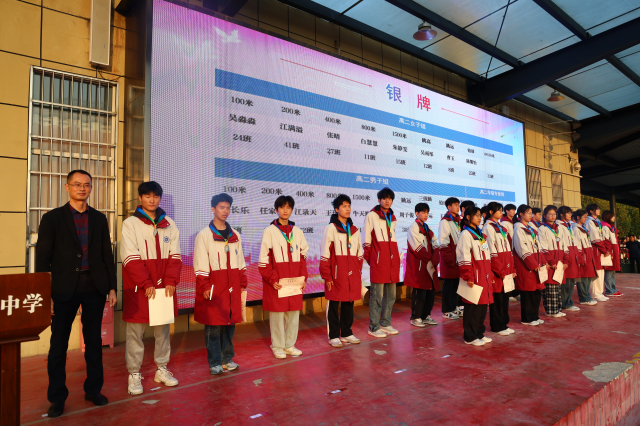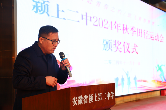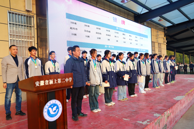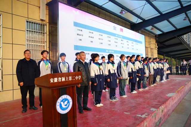为表彰学校体育健儿在本届秋季田径运动会中的突出表现,鼓励二中学子继续发扬体育精神,展现青春风貌,用行动践行初心,以担当诠释使命,11月11日,颍上二中在操场举行隆重的颁奖仪式。高一高二年级全体师生参加。本次仪式由高一(17)班石传伟和高一(24)班李若瑶主持。