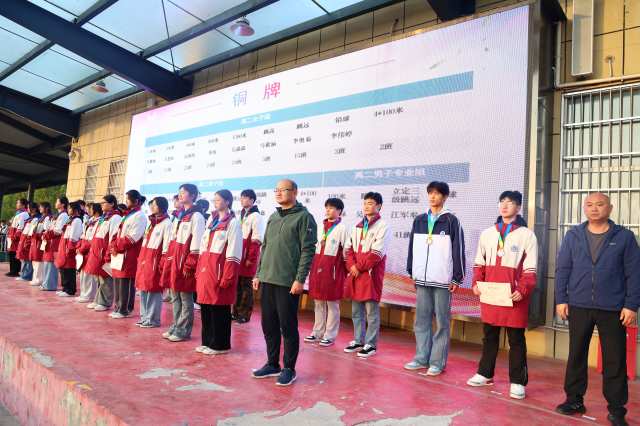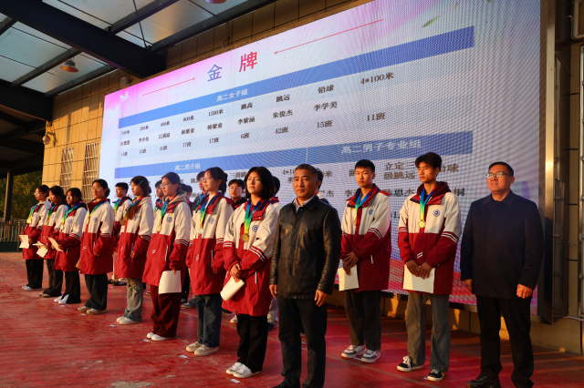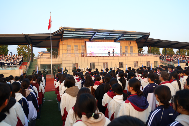 集体奏唱国歌,升国旗后。校长石振华作重要讲话。他强调,校内表彰运动会获奖学生,树立学生体育自信。他对本次获奖的运动健儿们表示祝贺,感谢为本次活动辛勤付出的工作者们,并向在场的同学们提出了更高的期待,希望同学们能够将运动作为爱好,积极参与体育活动,充分发扬体育精神,响应国家建设体育强国的号召,好好学习,好好运动,积极阳光,健康向上。