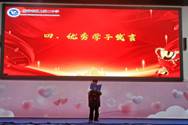 学生代表高一(3)班黄鑫同学分享了个人的学习策略和心得体会。他强调,要勤勉向学,矢志不渝地追求更高远的境界。他的演讲深深地触动了在场师生的心弦,更如同一股强劲的东风,激发了大家的学习激情与奋斗意志。