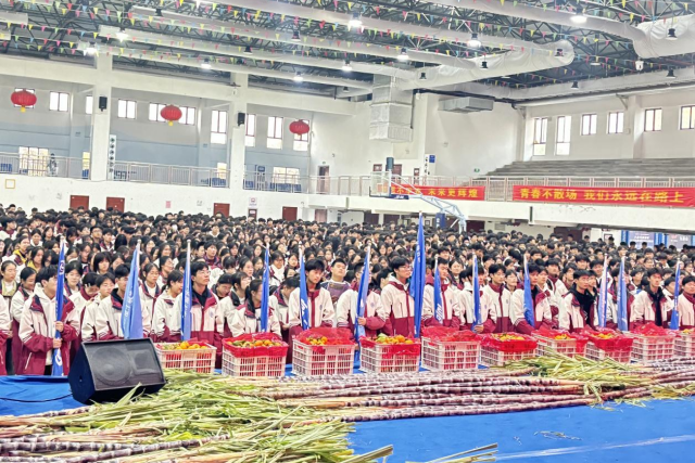张义能宣读期中联考获奖“进步之星”、“卓越之星”、“榜样之星”、“优胜班级”和“优胜级部”,伴随着同学们热烈的掌声,获奖同学有序登台,一张张象征荣誉的奖状映衬着同学们的笑容,一根根象征节节高升的甘蔗饱含着同学们收获的喜悦和奋斗的自豪。