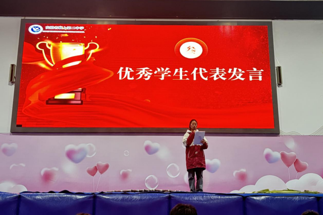 优秀学生代表李雪婷发言,她认为此次成绩的取得离不开老师的辛勤付出及同学们的互帮互助,分享课前预习、课上学习、课后复习的学习经验,并警醒同学们应对此次所取得的成绩保持一颗清醒的头脑,胜不骄、败不馁,树立远大的目标,坚持不懈,追求卓越。