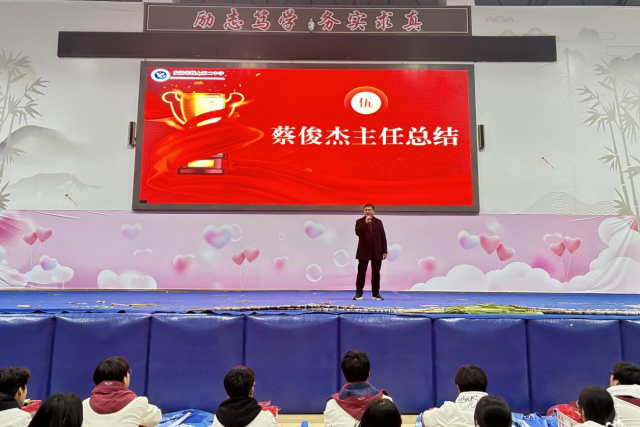 蔡俊杰作总结讲话。他充分肯定了同学们在此次期中考试中所取得的优异成绩,并且希望同学们能够从榜样中汲取信仰的力量,学习他们勤奋刻苦、积极进取的精神,认真对待平时的周考测试,勇于进取,勉励师生以此次表彰为契机,携手并进。