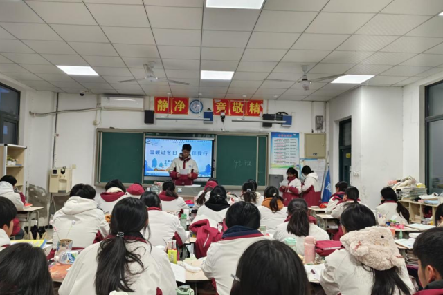 各班分别从交通出行、防寒防冻、用电安全、健康防护等方面提出建议,呼吁大家增强安全意识,以安全规范为准则,注重文明礼仪,团结友爱,相互包容,共同维护校园的安全与和谐。