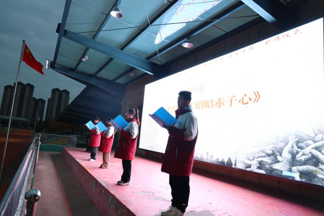 高二(1)班杨凯琪、高二(2)班谢昊辰、高二(3)班王嘉欣、高二(10)班周雨馨带来朗诵《寸寸山河梦,昭昭赤子心》。他们的朗诵回顾了南京大屠杀的悲惨历史,强调了铭记历史、勿忘国殇的重要性。同时呼吁同学们要珍惜和平,努力学习,为实现中华民族的伟大复兴贡献自己的力量。