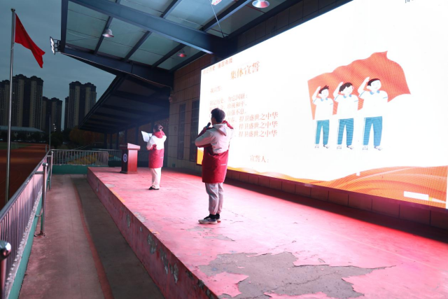 集体宣誓环节,主持人带领全体同学紧握右拳,庄严宣誓:铭记历史,勿忘国耻,敬畏生命,珍视和平,以史为鉴,自强不息,愿以吾辈之青春,捍卫盛世之中华。字字铿锵有力,句句振聋发聩,喊出了二中学子为圆梦中华而努力奋斗的最强音。