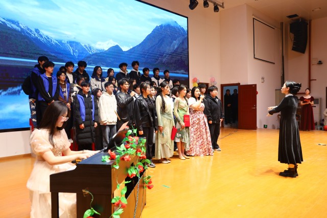此外,小品《当考试还有15分钟》《学生会竞选》聚焦校园生活,以幽默诙谐的表演引发观众的阵阵笑声,让大家在欢乐中回忆起校园生活的点点滴滴。话剧《傲慢与偏见》则将经典名著搬上舞台,同学们精湛的演技,生动地展现了作品中的人物形象和情节,带领观众领略文学经典的魅力。刘珊老师演唱的《我爱你中国》以及颍上二中合唱团带来的《祖国不会忘记》,将现场气氛推向高潮,饱含深情的歌声唱出了师生们对祖国的无限热爱和崇高敬意。