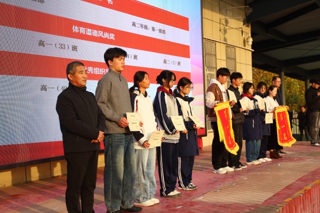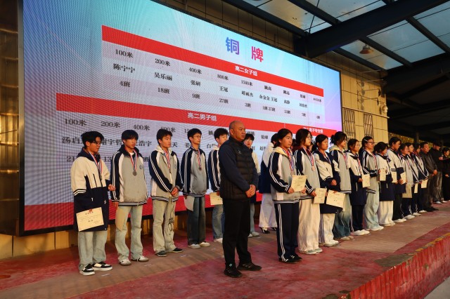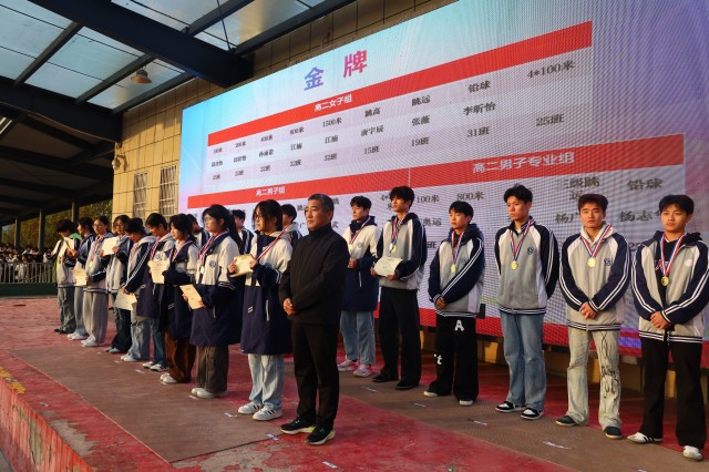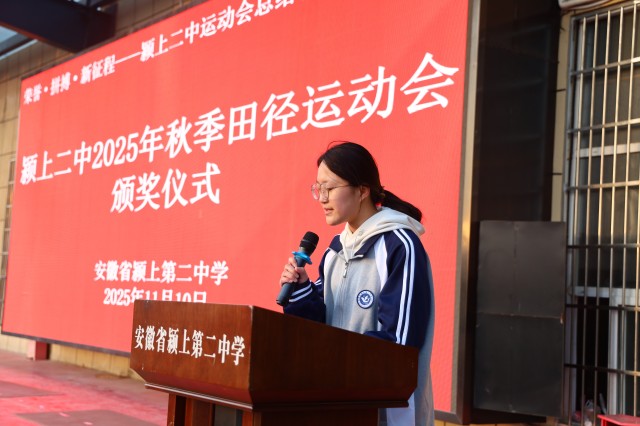 金秋送爽,丹桂飘香,伴随着激昂的运动员进行曲,11月10日上午7点,颍上二中在学校田径场隆重举行秋季田径运动会颁奖仪式。高一高二年级全体师生参加。本次颁奖仪式由高一(15)班李梓沫和高一(31)班陈浩主持。