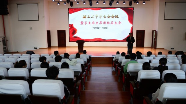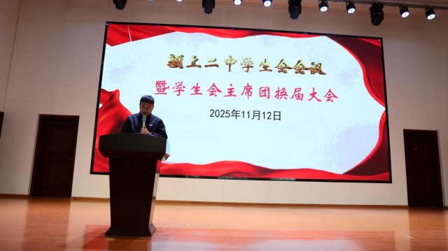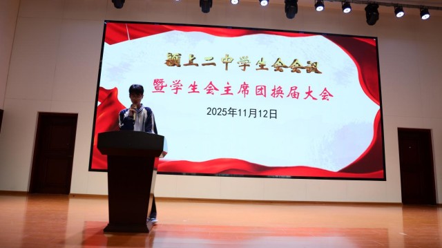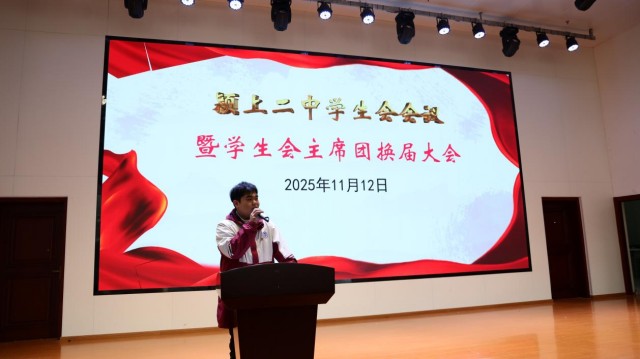 11月12日上午,颍上二中2025-2026届学生会主席团换届会议在校西报告厅隆重举行。会议由政教处副主任蒋辉主持,政教处主任彭伟、学生会全体成员及各部门负责人出席会议。