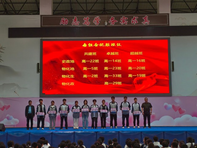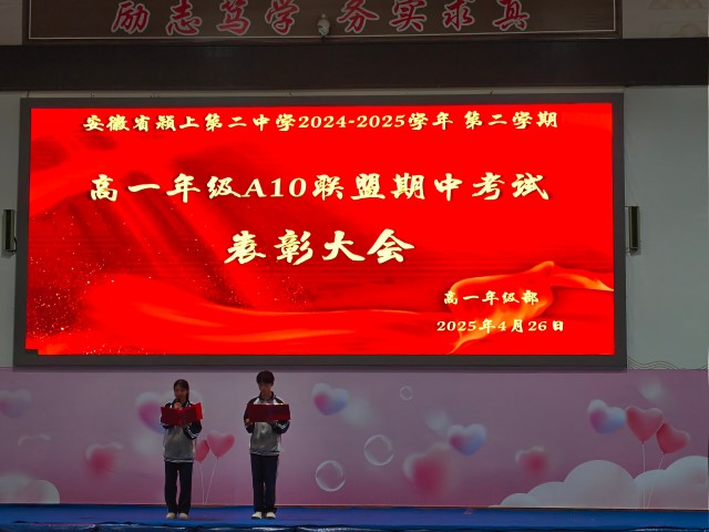 半期耕耘结硕果,精析聚力再前行。为表彰先进,树立典型,进一步激励广大师生争先进位,奋发有为,营造更加浓厚的学习氛围,同时,也为进一步总结过去,找到问题与不足、在办学中沉淀经验、提升质量,4月26日下午,颍上二中高一年级 A10 联盟期中考试表彰大会在体育馆隆重举行。校党委书记朱超,校长石振华,第一党支部书记吴刚,高一年级部主任费健民,副主任张俞、高浩、王明信以及高一年级全体师生齐聚一堂,共同见证这一荣耀时刻。