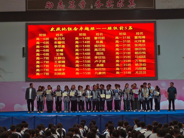 海到尽头天做岸,山登绝顶我为峰。每一点进步都藏着努力,每一点努力都值得纪念。在此次考试过程中,涌现了一批敏而好学、孜孜以求、在书山中取得佳绩的同学,在大家的期待与掌声中,学校领导和年级部负责人为在A10联考中表现优异的学生颁发奖状与奖品,表彰他们在学习上的卓越成就,鼓励他们再接再厉,勇攀高峰。