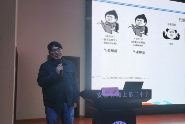 春风化雨润桃李,群策群力育英才。为进一步加强班主任队伍建设,分享优秀实践经验,切实提升班主任专业素养和管理水平,4月21日下午,颍上二中举办以“源头汲活水,赋能共成长”为主题的班主任论坛活动。颍上第五中学九年级副主任苏贤、颍上二中优秀班主任王浩然分别分享了班级管理经验。校长石振华、副校长常其征及全体班主任参会,本次论坛由政教处主任彭伟主持。