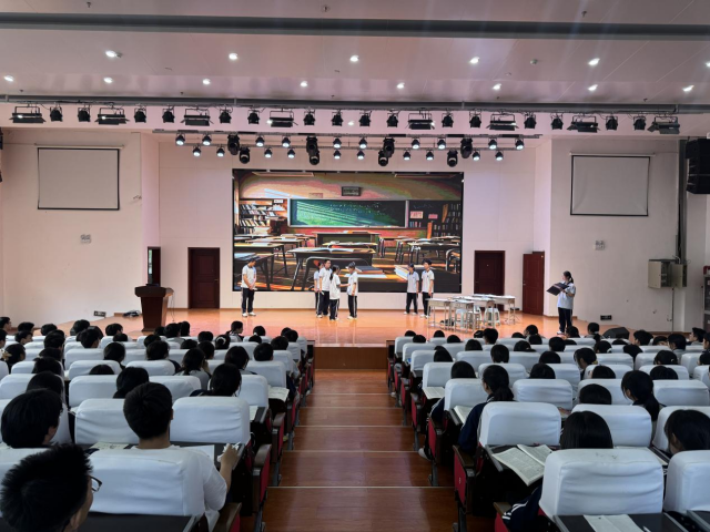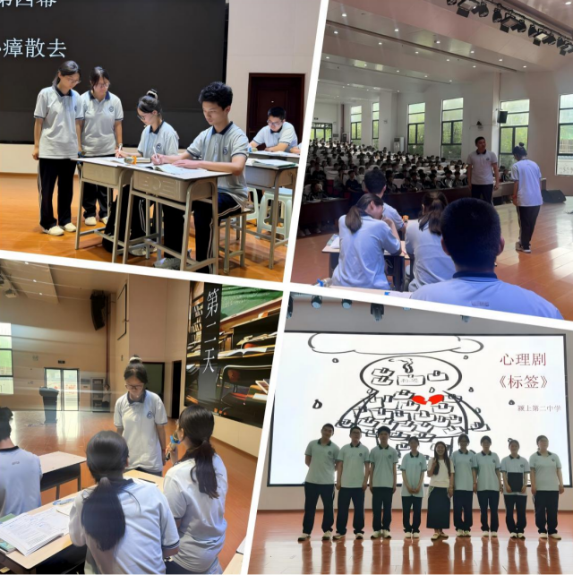 5月19日下午,按原计划组织开展了本学期第8场心理健康知识讲座。讲座由颍上二中团委副书记李烺主持,专职心理健康教师王甜甜担任主讲。讲座前,高一(4)班阳光心理社团的同学在朱言哲老师的指导下,带来了原创心理剧《标签》的精彩表演。同学们通过生动的剧情,聚焦“标签化”现象对青少年心理的影响,再现了中学生日常生活中常见的心理矛盾与困惑,以寓教于乐的方式引导大家关注心理健康,赢得了现场师生的热烈掌声。