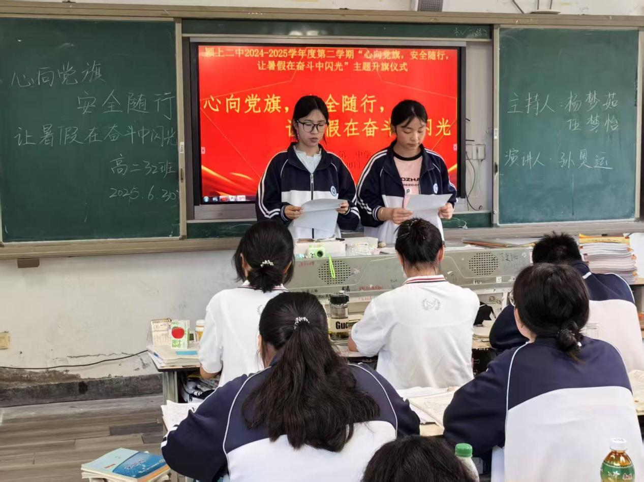 六月蝉鸣渐起,暑期的脚步悄然临近。为强化中学生安全防范意识,护航同学们度过平安假期,6月29日上午7点,颍上二中举行“心向党旗 安全随行 让暑假在奋斗中闪光”主题升旗仪式。