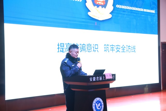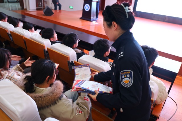 为切实增强青少年防诈骗意识,提升识骗、防骗、拒骗能力,守护学生财产安全与身心健康,1月12日,颍上二中举办以“提高防骗意识 筑牢安全防线”为主题的法治报告会。学校法治副校长、颍上县胜利派出所教导员江蛟受邀主讲,全校师生共同参与此次活动。报告会由政教处主任彭伟主持。