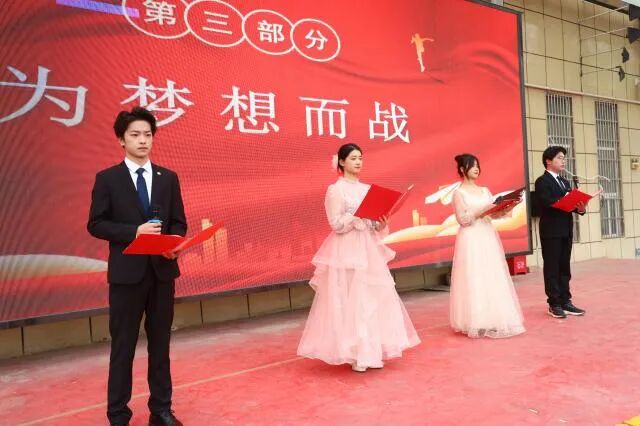 庄严的国歌奏响,开启了冲刺高考、决胜高考的崭新征程。三年的高中生活,像是一部五彩斑斓的画卷,每一笔都成为值得珍藏的记忆。那些精彩而又难忘的瞬间,伴着激昂的音乐展现在大屏幕上。吴景林、郑梓馨、王佳慧、高泽敖四位同学朗诵的《为梦想而战》,让同学们热泪盈眶。高中三年,每一位书华学子变得更加坚韧和勇敢。随后,43位高三班主任上台宣誓并送上高考祝福,铿锵有力的誓言代表了全体高三老师的心声,相信有他们的保驾护航,有同学们的奋力拼搏,2024年6月一定是一个硕果累累的季节。