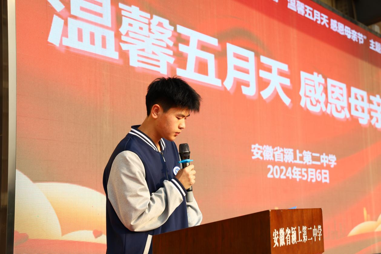 5月6日上午7点,颍上二中在北操场举行“温馨五月天 感恩母亲节”主题升旗仪式。校领导班子成员、中层干部、全体班主任和全体学生参加了本次升旗仪式。本次升旗仪式由高二(6)班陶静和高二(40)班王家豪主持。