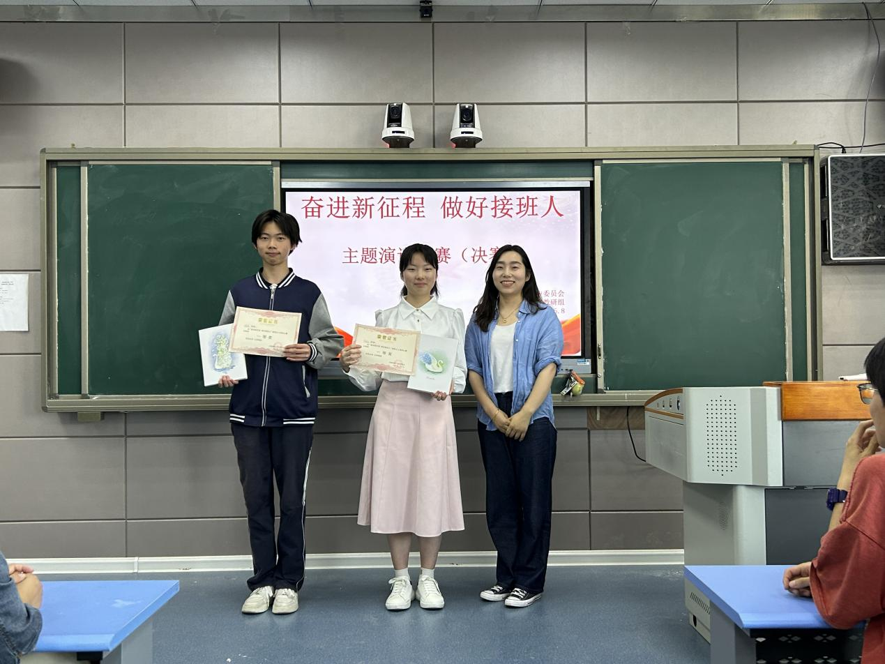 在激烈的竞争和公正的评选中,评选出一等奖两名,二等奖四名,三等奖五名。获得一等奖的选手将代表学校参与县级比赛。团委书记李慧和评委老师们为选手们颁奖并合影留念。