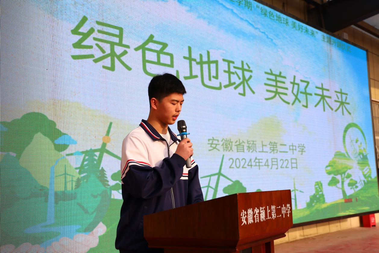 4月22日上午,颍上二中在北操场举行“绿色地球 美好未来”主题升旗仪式。校领导班子成员、中层干部、全体班主任和全体学生参加了本次升旗仪式。本次升旗仪式由高三(19)班王佳慧和高二(26)班吴景林主持。
