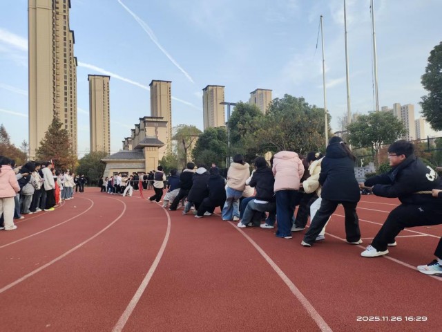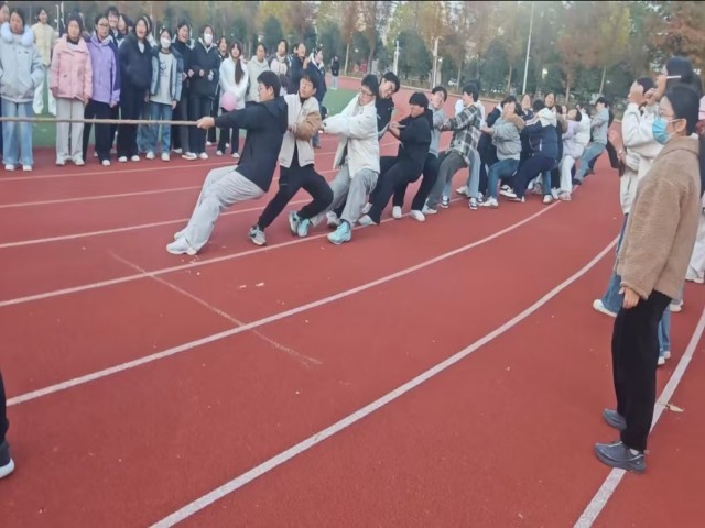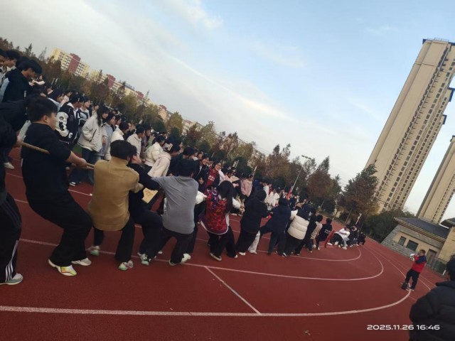 冬阳正好,青春如火。夕阳的余晖中的操场,人声鼎沸,11月26日下午,高一年级部分班级学生以绳为媒,以力会友,展开了一场凝聚班级荣耀、彰显青春力量的拔河比赛。