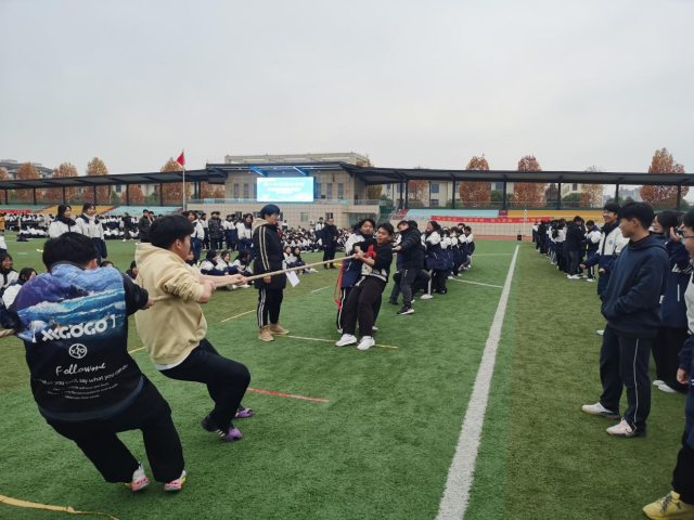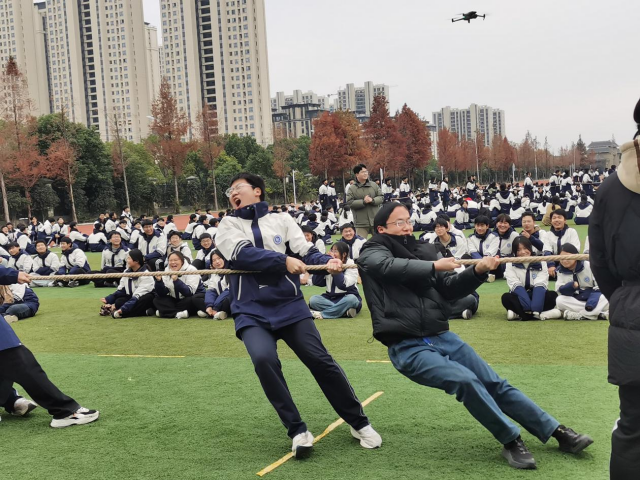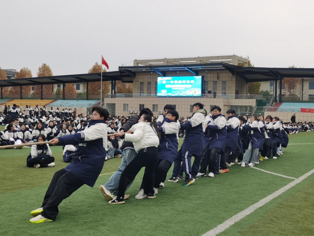 享冬日暖阳,悦健康身心。为团结同学,丰富同学们的课余文化生活,活跃学校气氛,增强学生体育锻炼意识,12月9日下午,颍上二中高一年级冬季拔河比赛在校园激情上演。全年级共计39个班级参与了此次角逐,比赛现场热情洋溢,为校园注入了无限活力。