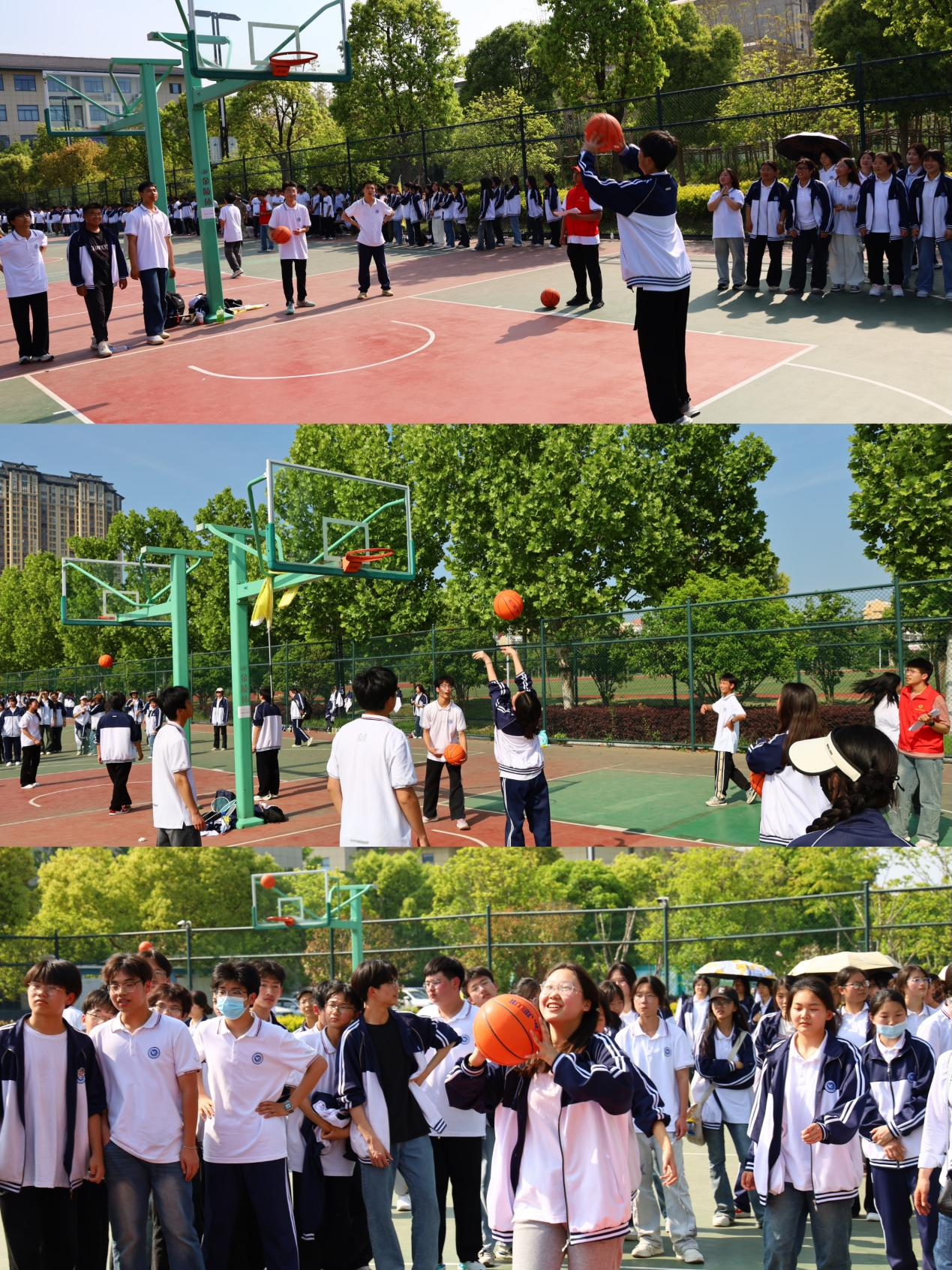 活动第二项为趣味投篮比赛。每班全体学生参与,每人投篮一次,投进篮筐得一分,根据每班进球总得分进行排名。比赛伊始,会打篮球的同学主动教授不太会投篮技巧的其他同学,主动捡球送给下一位投篮者……同学们之间的团结互助在此刻得以具象化表达。进球的瞬间,“哇~”声四起,不约而同地响起热烈般的掌声。