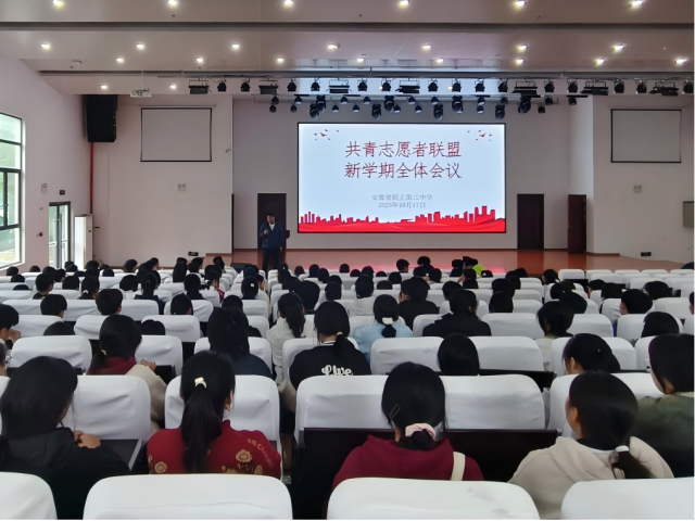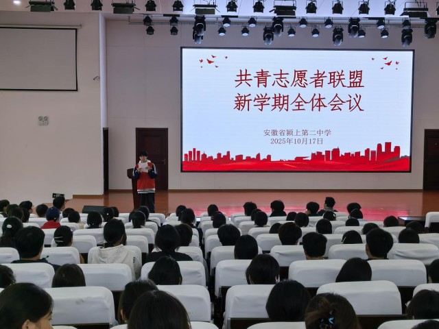 为统筹推进新学期志愿服务工作,助力新入志愿者快速融入团队,10 月 17 日上午,颍上二中团委在西报告厅举行共青志愿者联盟新学期全体会议,团委副书记李烺、刘慧慧老师与王甜甜老师参加。