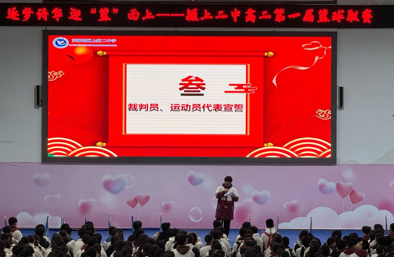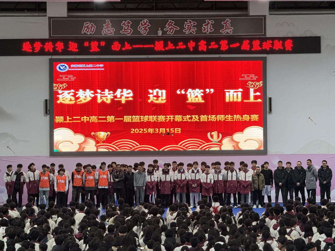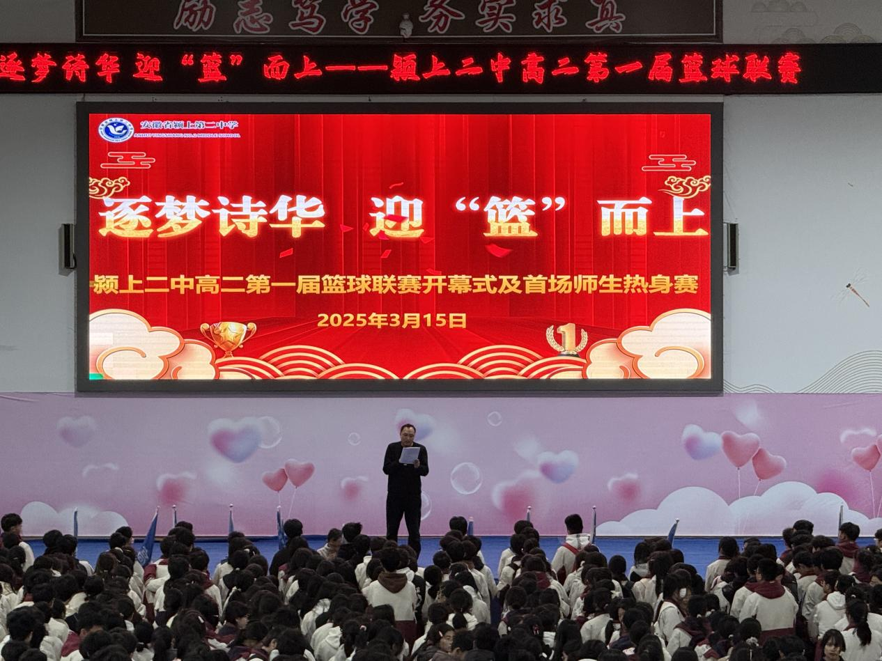 为丰富校园文化生活,增进师生情感交流,展现青春拼搏风采,3月15日上午,颍上二中高二年级于体育馆成功举办了首届师生篮球联赛。活动将竞技与趣味相融合,师生同场竞技、默契配合,展现了青春活力与团队精神,现场掌声、欢呼声此起彼伏。校长石振华,副校长李鹏,办公室主任彭俊山,艺体中心主任郭海军,高二年级主任蔡俊杰,部分教师代表及全体学生参与,开幕式由樊涛林主持。