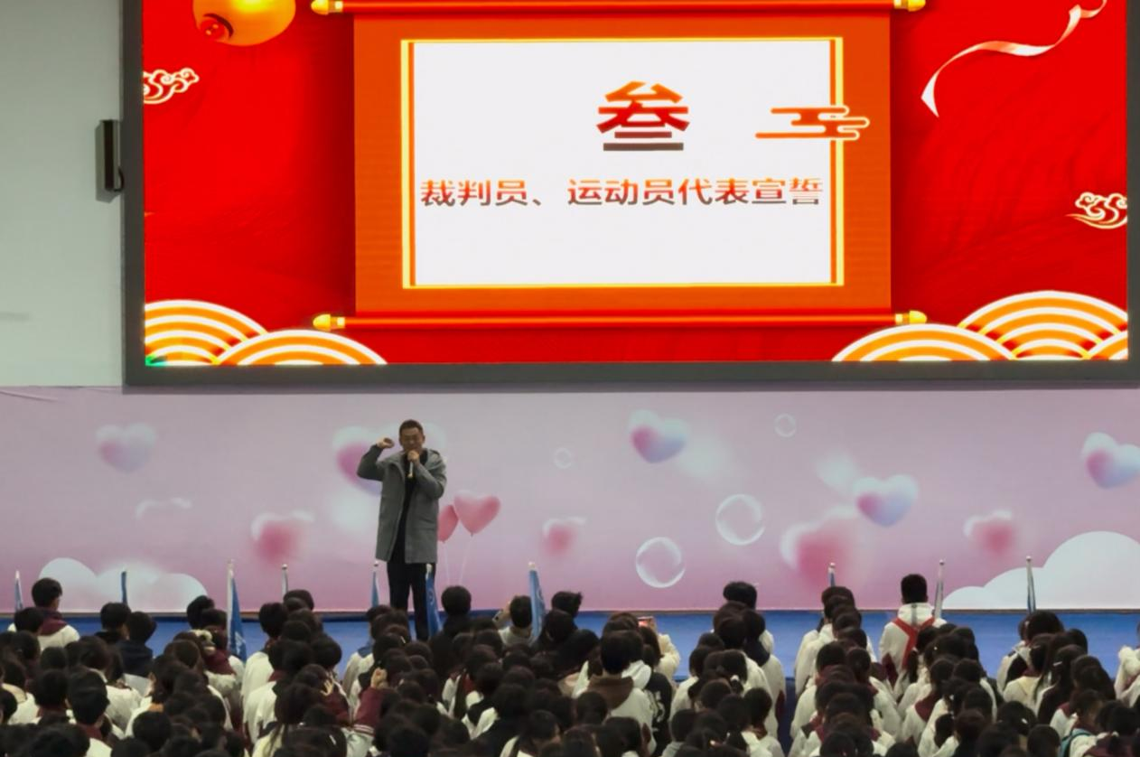 裁判员代表章寻寻老师与学生运动员代表王奥川同学分别宣誓,誓言铿锵有力又暗藏“包袱”:“我承诺公平判罚,绝不对老师‘放水’!”“我保证尊重对手,但不会对老师的投篮‘手下留情’!”诙谐的誓词让现场师生掌声雷动。李鹏强调比赛注意事项和相关规则。