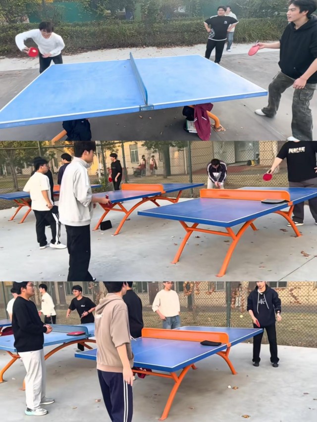 相邻的乒乓球区同样热度不减。这里不仅有师生切磋,学生间的单打对决更让气氛推向高潮。削球、扣杀,你来我往,一记旋球让学生连连惊叹,围观的同学自发组成应援团,喊着各自支持的选手名字。师生以球会友,每一次得分都换来彼此的击掌喝彩,距离在竞技中悄然拉近。