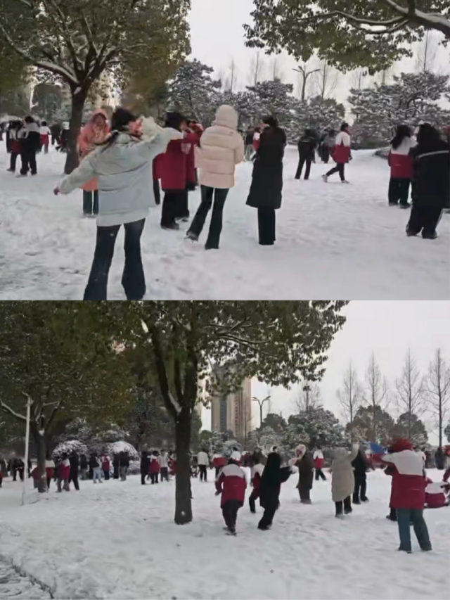 清扫任务高效完成后,课间休息时分,校园里洋溢起另一番欢声笑语。同学们利用短暂的休息时间,在已清理干净的空地及指定的安全区域,尽情享受瑞雪带来的乐趣。有的三两成群打起雪仗,笑声清脆;有的精心堆起小巧的雪人,创意十足;还有的师生一起在雪地上留下特别的文字与图案,寄托对未来的美好祝愿。这片片刻的轻松与欢愉,成为紧张备考生活中一抹亮丽的色彩,展现了高三学子张弛有度、朝气蓬勃的精神风貌。