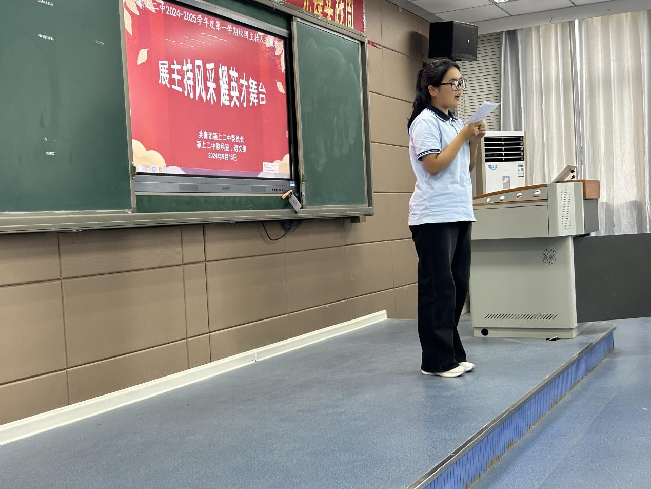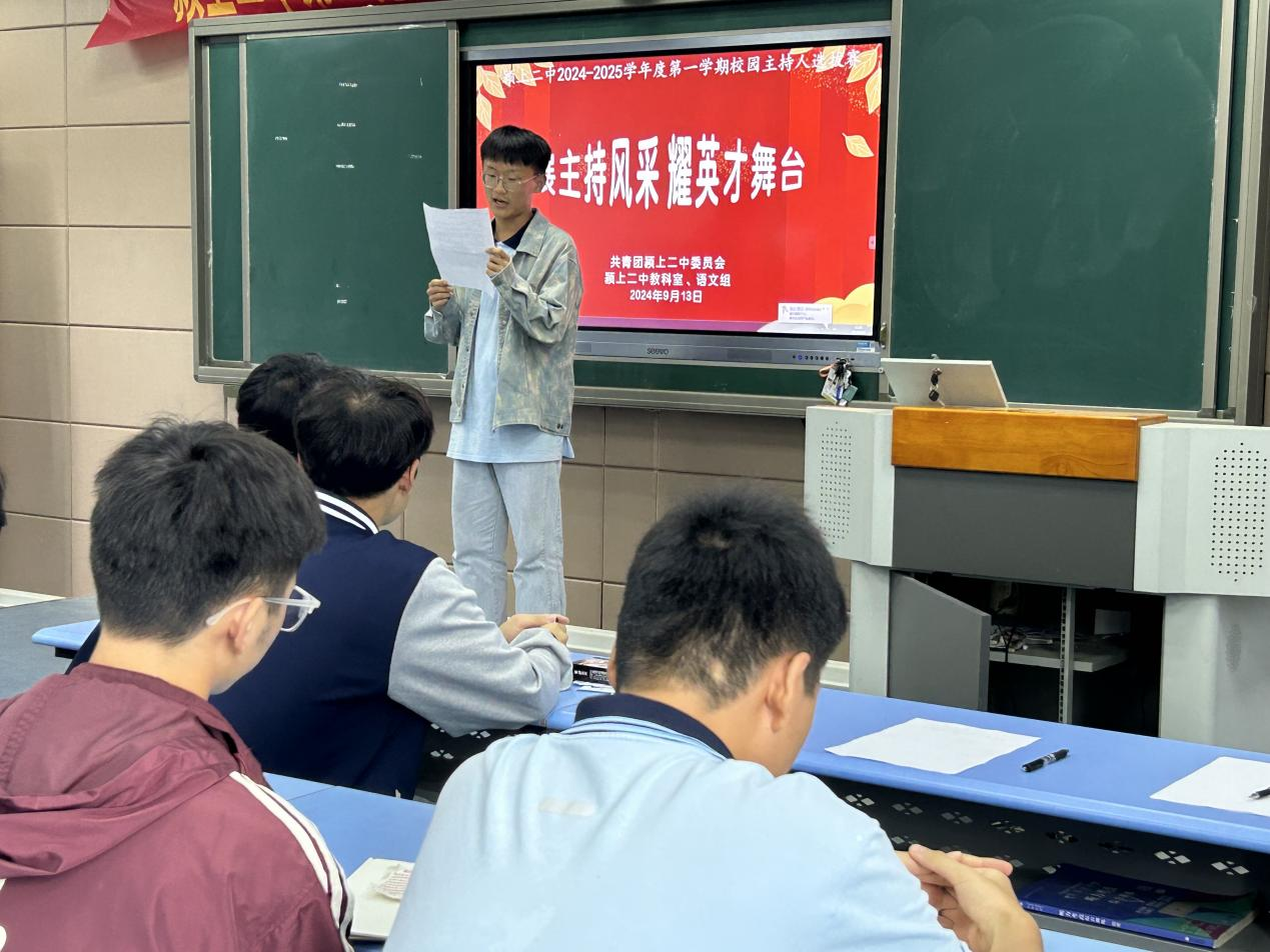 为丰富校园文化生活,营造良好氛围,展现学子精神风貌,提高学生综合素质,挖掘具有潜质的优秀主持人才,9月13日上午,颍上二中团委联合教研室、语文组在高一年级录播室举行“展主持风采 耀英才舞台”校园主持人选拔赛。高一年级共66位同学参加了本次选拔赛。