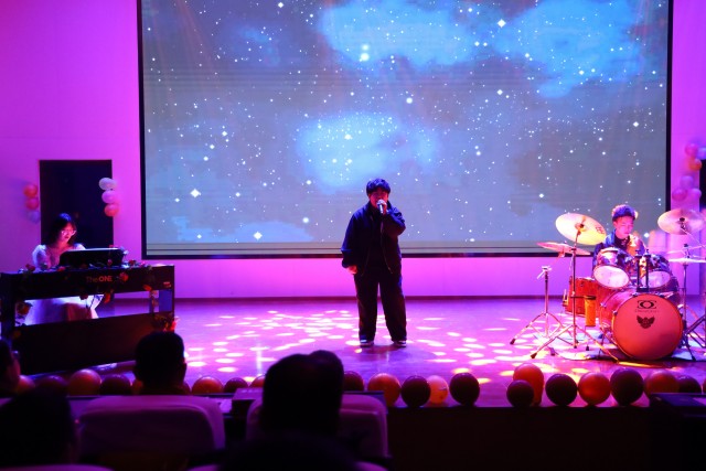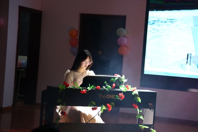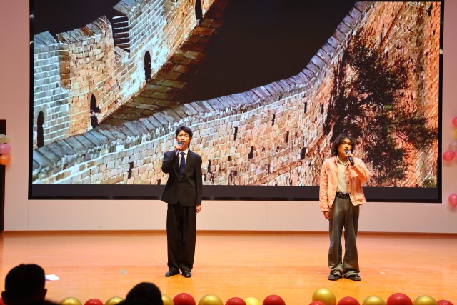 随后,精彩的节目轮番上演。曹凯歌、郭希旺、陶林语带来的架子鼓表演《激情打击乐》率先点燃现场气氛,激昂的鼓声如澎湃的浪潮,瞬间将观众带入充满活力的音乐世界,赢得阵阵掌声。王奥深情演绎的歌曲《光年之外》,用动人的嗓音诉说着跨越时空的爱恋,让观众沉浸在浪漫的音乐氛围中。朗诵《月光下的中国》《放飞中国梦》,或深情婉转,或慷慨激昂,同学们用真挚的情感表达了对祖国的热爱与赞美,展现出新时代青年的担当与追求。