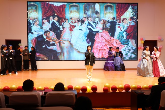 此外,小品《当考试还有15分钟》《学生会竞选》聚焦校园生活,以幽默诙谐的表演引发观众的阵阵笑声,让大家在欢乐中回忆起校园生活的点点滴滴。话剧《傲慢与偏见》则将经典名著搬上舞台,同学们精湛的演技,生动地展现了作品中的人物形象和情节,带领观众领略文学经典的魅力。刘珊老师演唱的《我爱你中国》以及颍上二中合唱团带来的《祖国不会忘记》,将现场气氛推向高潮,饱含深情的歌声唱出了师生们对祖国的无限热爱和崇高敬意。