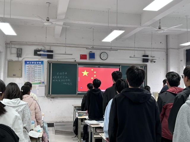 雄壮的《义勇军进行曲》奏响,全体同学起立唱响国歌。升旗仪式后,同学们在各自班级开展活动。同学们纷纷追溯了重阳节“登高望远、敬老思亲”的历史渊源,分享古今敬老孝亲的典范故事,呼吁大家将重阳文化内化于心、外化于行:在校感恩师长教诲,于家孝敬父母长辈,用一句问候、一次陪伴、一份担当传递真情。