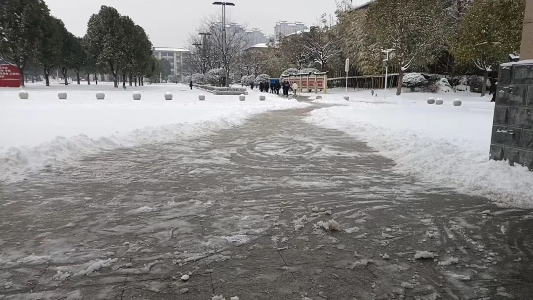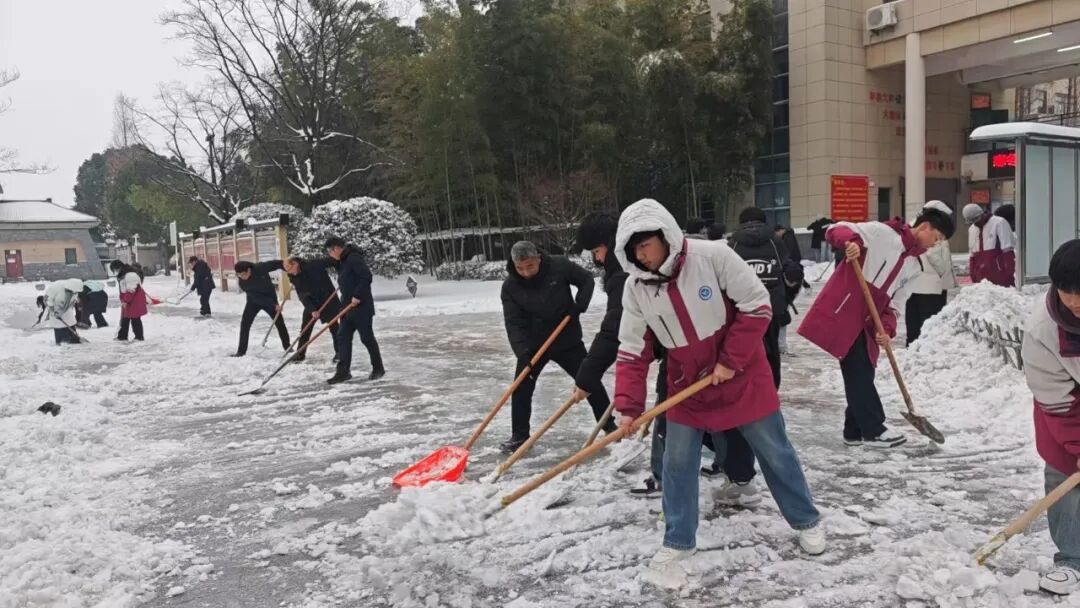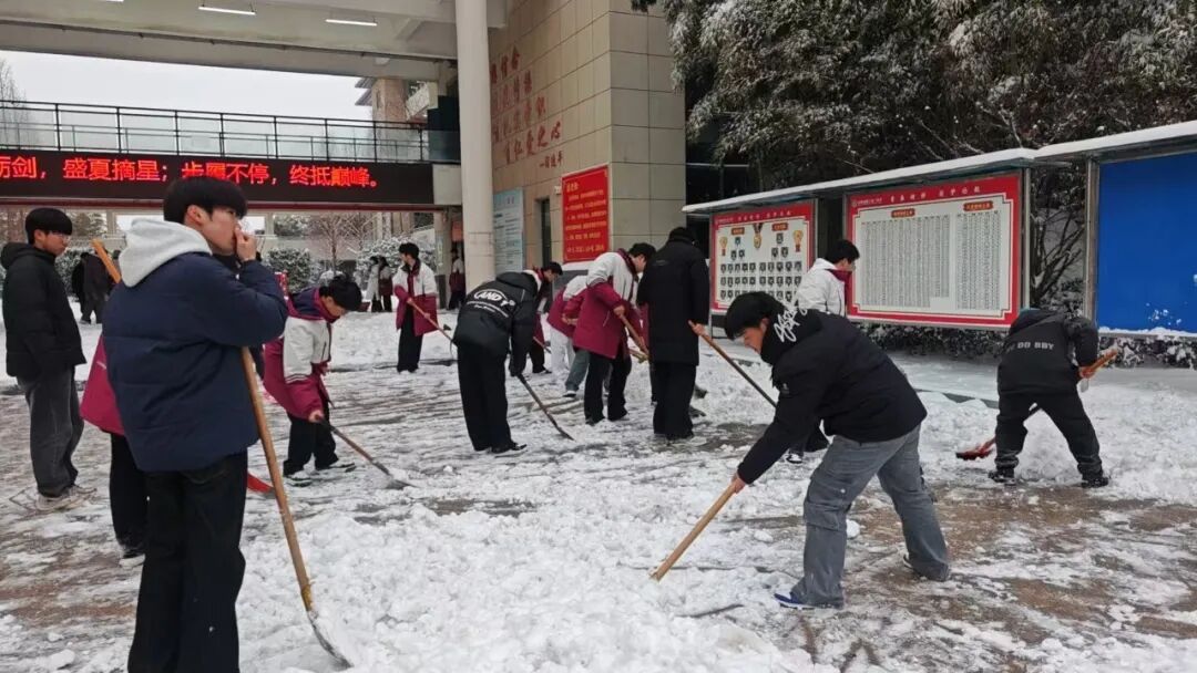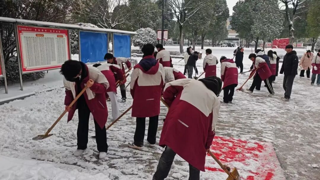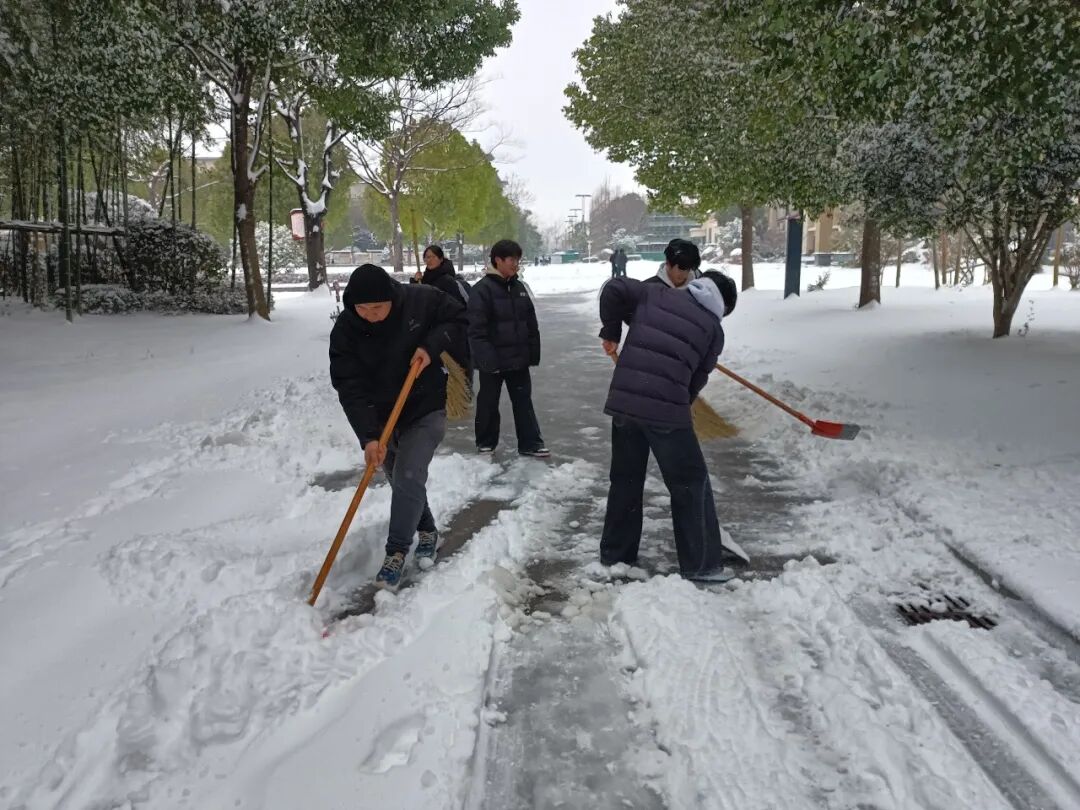在这次行动中,师生们展现出了高度的责任感和团结协作精神。由于天气寒冷,地面上不仅存雪量大且冰冻凝固,坚硬无比,给除雪铲冰带来了很大难度。大家不畏严寒,默契配合,或铲、或扫、或推,想尽各种办法破冰除雪,忙碌的身影筑成冰雪中的亮丽风景。经过1个多小时的奋战,主干道的积雪积冰基本清理完毕,师生们用实际行动清扫出了一条条迎接师生顺利回归的“平安路”。