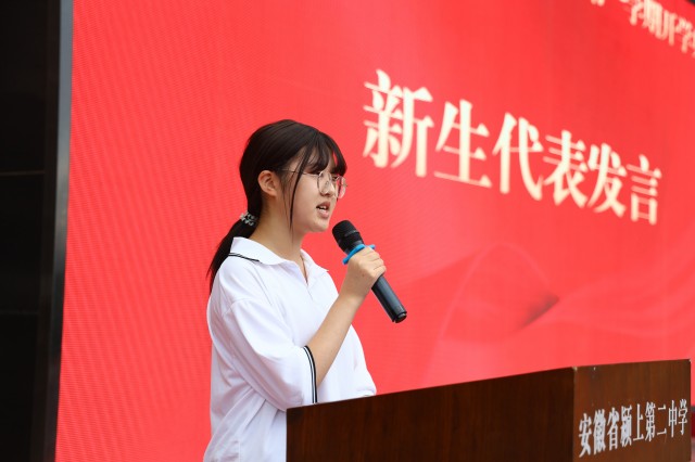 雏凤清声传壮志,新苗蓄势待成长。作为校园的新生力量,高一学子的到来为颍上二中注入了新鲜活力。高一(23)班程紫怡同学作为新生代表发言,她以“先辈护和平,吾辈当自强”为核心,回顾了八十多年前先辈们在烽火中守护文明的壮举,坦言如今明亮的教室、安宁的校园,都是英雄用生命换来的珍贵馈赠。她号召全体新生带着敬畏之心学习、怀着勇气之力成长、守着初心之志前行,将“为中华之崛起而读书”的壮志融入高中三年,用知识与行动续写先辈未竟的理想,赢得在场师生阵阵掌声。
