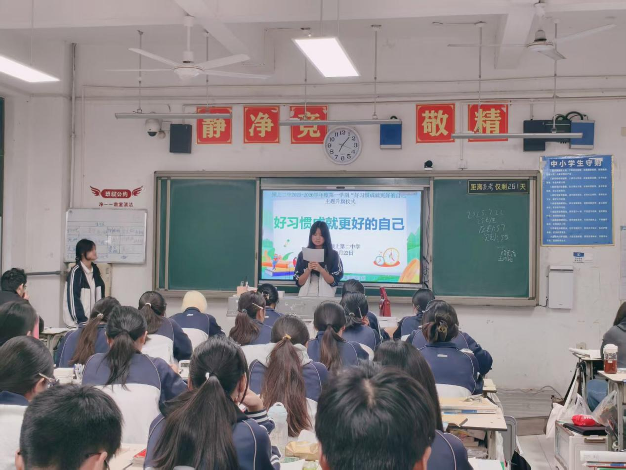 为引导学生培养优良习惯、塑造卓越品格,9月22日上午7点,颍上二中在校园广播站举行以“好习惯成就更好的自己”为主题的升旗仪式。