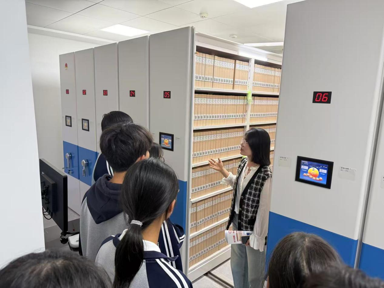活动期间,在工作人员的带领下,学生代表们依次走进档案利用大厅、档案库房、数字化档案加工室三大核心区域。在档案利用大厅,通过工作人员的演示,同学们清晰掌握了档案查询、调取的完整流程,真切感受到档案在服务民生、助力社会事务中的重要作用;步入档案库房,工作人员详细介绍了库房恒温恒湿控制系统、档案分类存放标准及安全防护措施,让学生们深刻认识到档案保护工作的严谨性与专业性。