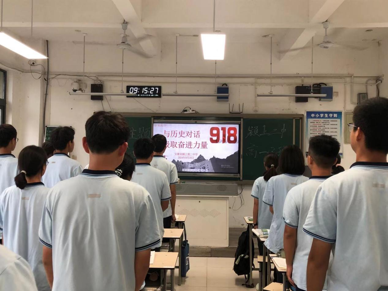 9月18日上午9点18分,颍上二中在广播站举行“与历史对话、汲取奋进力量”纪念“九一八”主题教育活动。全体学生在班级参加了本次活动。活动由高一(1)班李馨怡和高一(17)班石传伟主持。