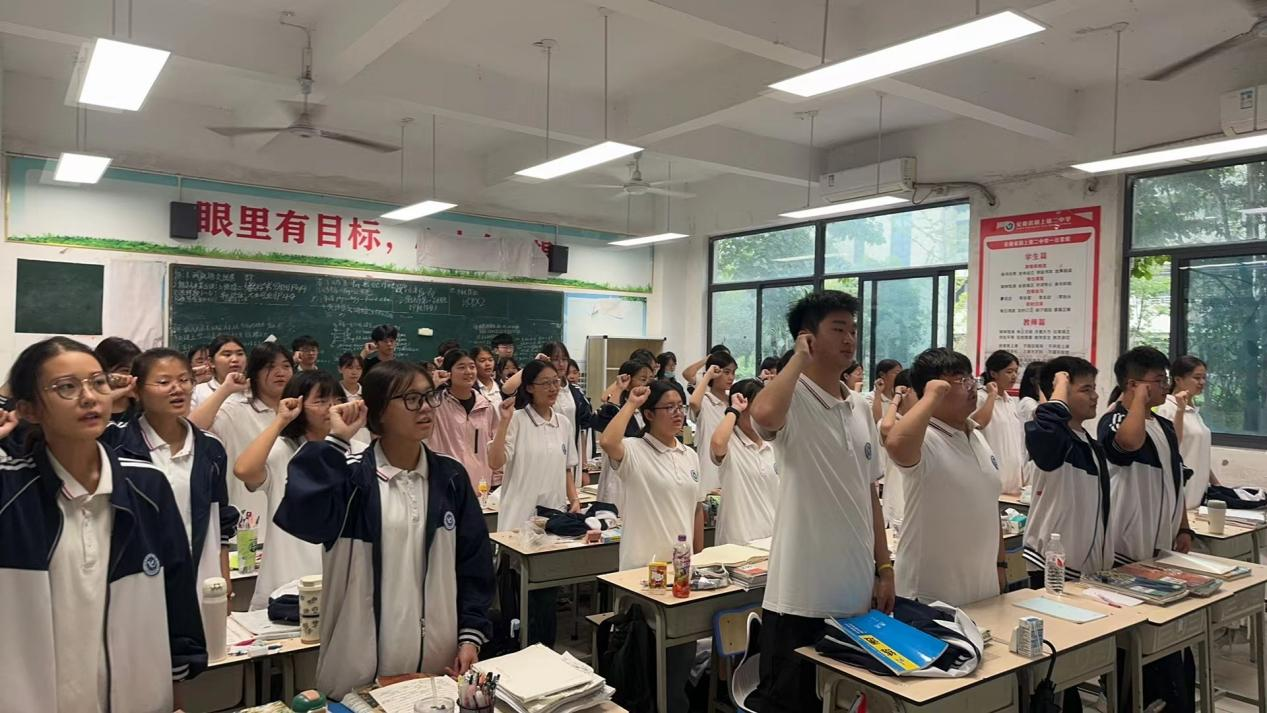 活动最后,全体学生在主持人的带领下举起右拳庄严宣誓,一句句铿锵的誓言彰显着二中学子积极进取、昂首向上的精神风貌。相信同学们会牢记今天的誓言,做时代的追梦人,勇往直前。