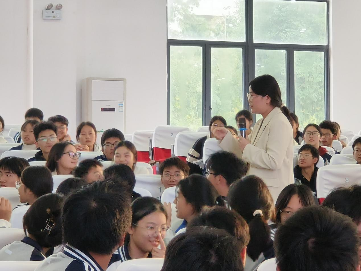 本次讲座由校团委副书记李烺主持,他以热情洋溢的开场白,迅速点燃了现场的气氛。紧接着,心理健康教育专职教师王甜甜作为主讲老师,以其专业的视角和丰富的经验,为学生们带来了一场既实用又富有启发性的心理健康指导。她的讲座围绕“心适应,新起航”主题,深入剖析了高一学生常见的心理困惑与挑战,并提供了有效的应对策略和方法。