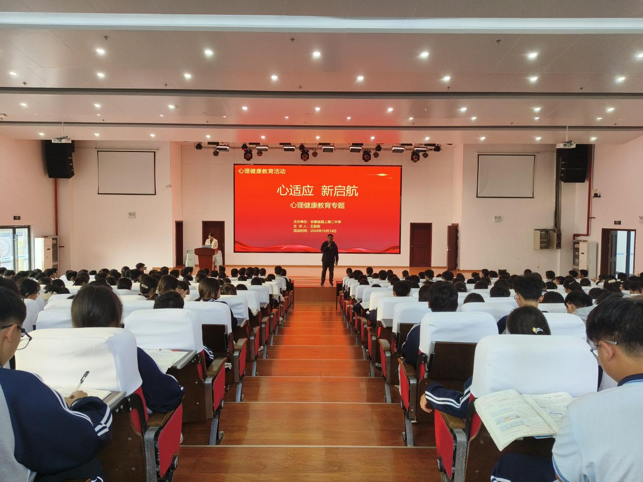 10月14日下午,颍上二中在西报告厅拉开了本学期“心适应,新起航”心理健康教育循环讲座系列的序幕。作为该系列讲座的首场,本次活动不仅为学生们提供了一次深入了解心理健康重要性的机会,也标志着学校心理健康教育工作的进一步深化。