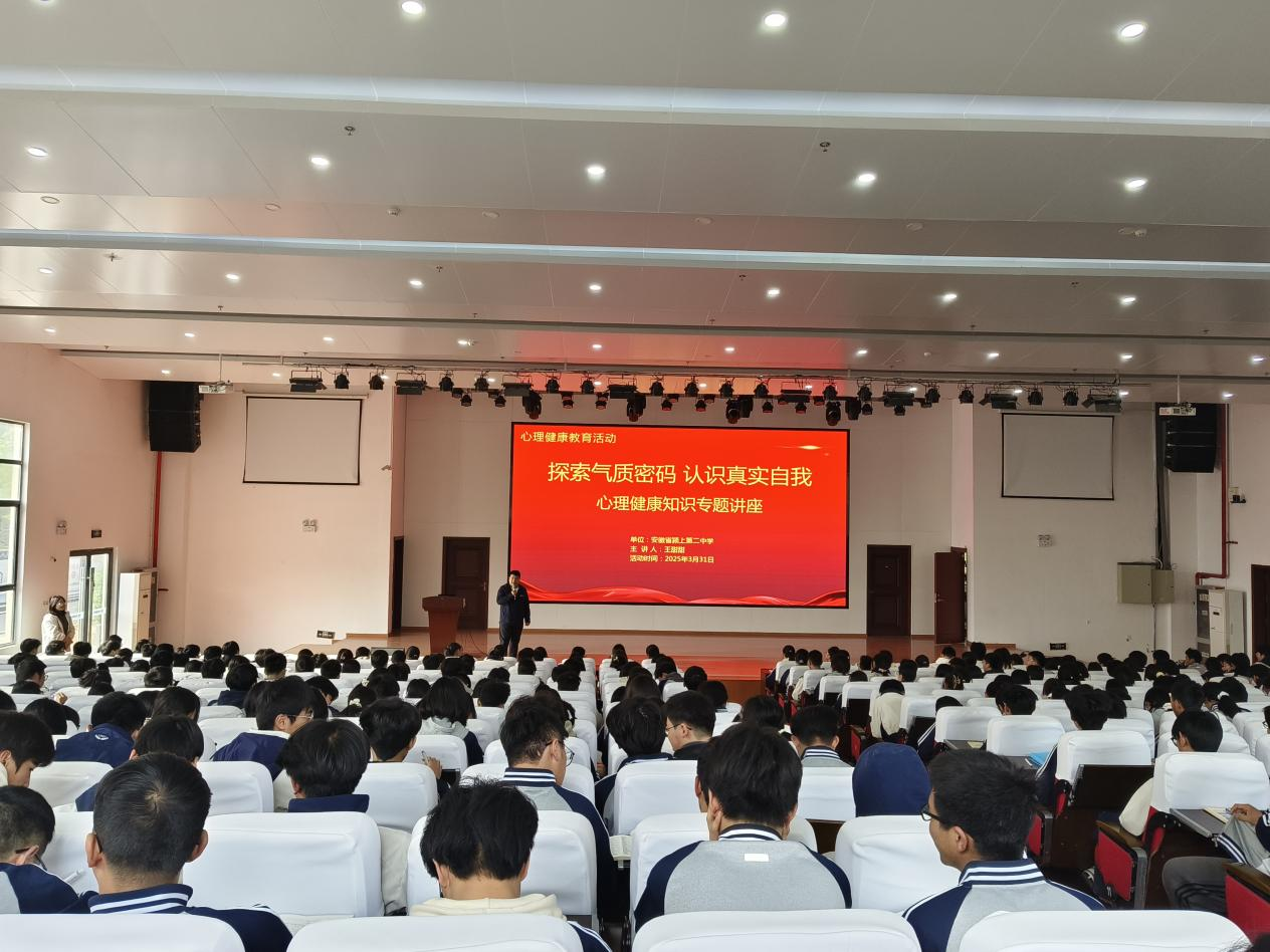 为引导学生科学认识个性特质,深化自我认知,为青春成长注入积极能量,3月31日下午,颍上二中高一年级1至10班的500余名学生齐聚报告厅,参加本学期首场学生心理健康知识循环讲座。活动以“探索气质密码 认识真实自我”为主题,由校团委副书记李烺主持,专职心理教师王甜甜主讲。