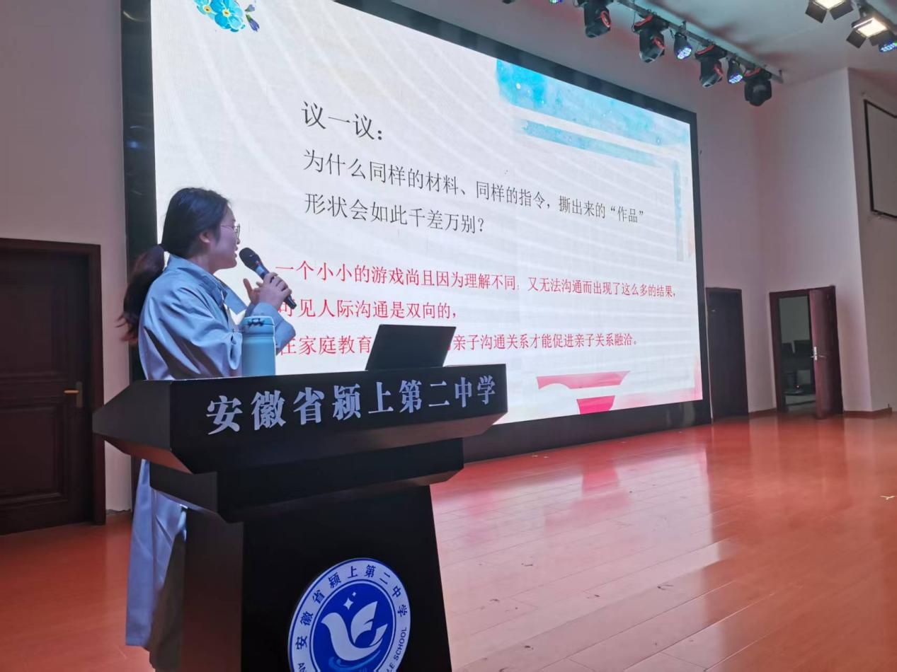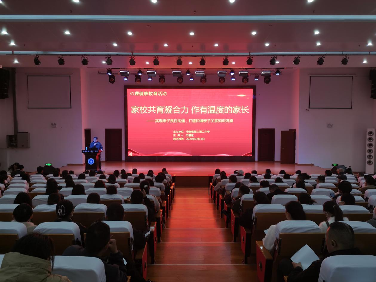 3月13日,颍上二中东报告厅内温情涌动,一场别开生面的高二年级家长心理健康教育讲座在此举行。活动以“家校共育凝合力,作有温度的家长”为主题,聚焦“实现亲子良性沟通”,通过趣味互动与专业指导,助力家长破解青春期教育难题。讲座由校团委副书记李烺主持,近400名家长共同参与。