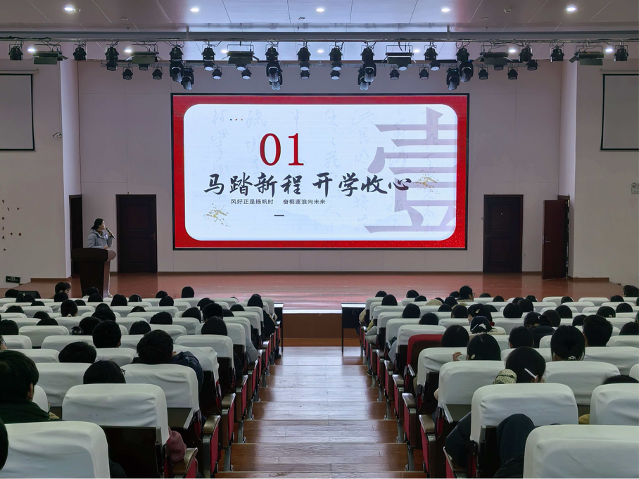 本次讲座由校团委心理健康中心精心策划,主讲人为专职心理老师刘慧慧,刘老师紧扣“马踏新程逐梦前行”主题,立足2026丙午马年的奋进寓意,将马的坚韧、执着、昂扬特质与青少年身心成长规律深度融合。主持人王甜甜老师统筹现场流程,以亲切的引导迅速搭建互动氛围,为同学们送上温暖务实的“心灵开学礼”。