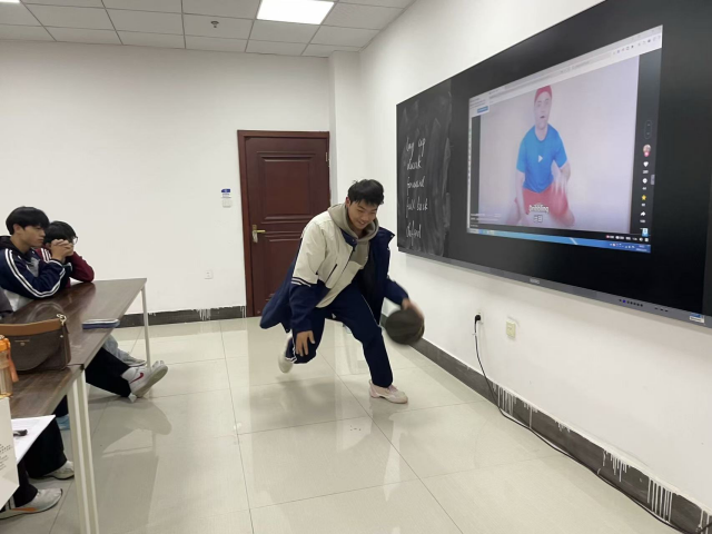 课程起始,老师带领学生们探寻篮球的起源。从篮球运动的诞生背景,到其在不同国家和地区的传播与演变,每一个精彩的故事都深深吸引着同学们的注意力,让他们对篮球这项运动有了更为深入的认识和理解。随后,老师将重点转移到了篮球英语专业知识的学习上。学生们满怀热忱,积极跟读,还踊跃展示自己对专业动作的理解,将理论学习与实际动作相结合。无论是标准的投篮姿势对应的“shoot”,还是准确的传球动作所关联的“pass”,学生们都力求做到动作与英语表达的精准匹配。老师耐心地倾听每一位同学的发音,并及时给予纠正和指导,确保每位同学都能准确地掌握这些篮球英语词汇。