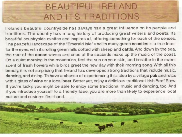 活动之初,社团老师带领社员们深入赏析了新人教版必修二Unit2的阅读材料Beautiful Ireland and Its Traditions。通过对课文的探索,社员们仿佛置身于爱尔兰”Emerald Isle”的翠绿山川之中,感受着大自然的壮美与人文的深厚。基于课文,社团老师细致讲解了“五感法”的运用,引导大家如何通过视觉、听觉、嗅觉、触觉和味觉的描写(the depiction of sight, sound, smell, touch, and taste),将文字赋予生命,使文章更加鲜活、立体。